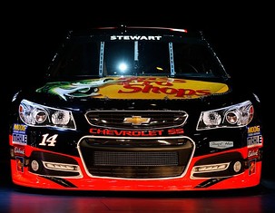 LAS VEGAS, NV – NOVEMBER 29: The 2013 model of the #14 Bass Pro Shops Chevrolet driven by Tony Stewart (not pictured) is displayed on stage during the NASCAR unveiling of the 2013 Chevrolet SS in the ballroom at the Encore Hotel on November 29, 2012 in Las Vegas, Nevada. (Photo by Chris Graythen/Getty Images for NASCAR)