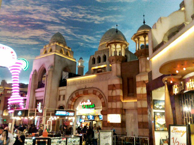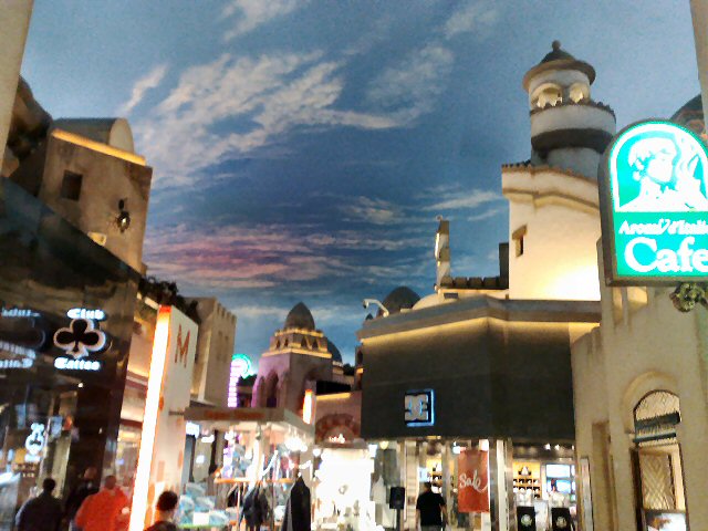 Vom Parkhaus aus sind wir runter zum Eingang. Dort war ein roter Teppich ausgelegt, so wie man es typisch von Hollywood her kennt. Von dort aus sind wir in eine Art Vorhalle gekommen. Die war so groß das man sich dort schon hätte verlaufen können. Dort war dann auch ein Wegweiser mit allen Geschäften, Restaurants usw.. Wir haben uns erst einmal angeschaut, wo was ist und was überhaupt dort drin ist. Nachdem wir entschieden hatten wo es lang gehen sollte, sind wir dann auf Endeckungstour gegangen.