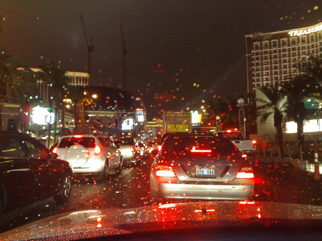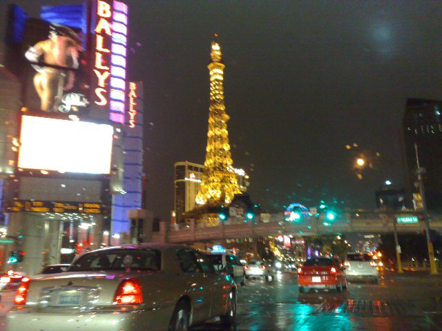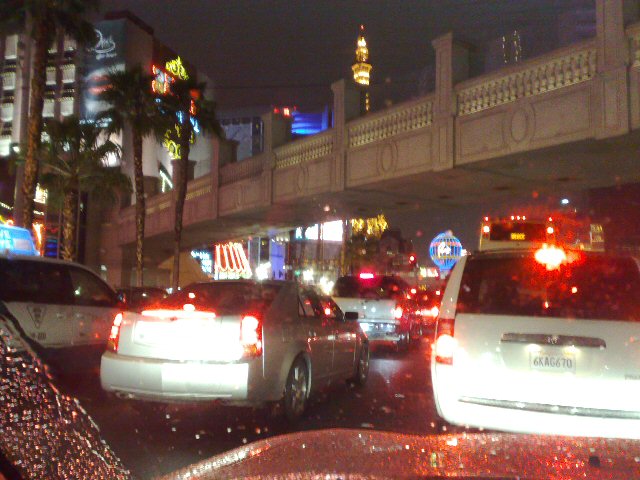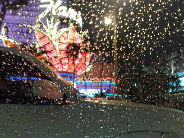 So sind wir dann mitten im Regen über den Strip zum Planet Hollywood mit unserem Dodge gefahren.