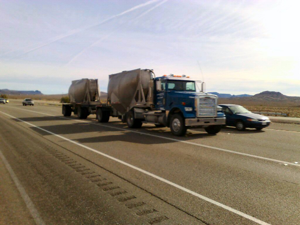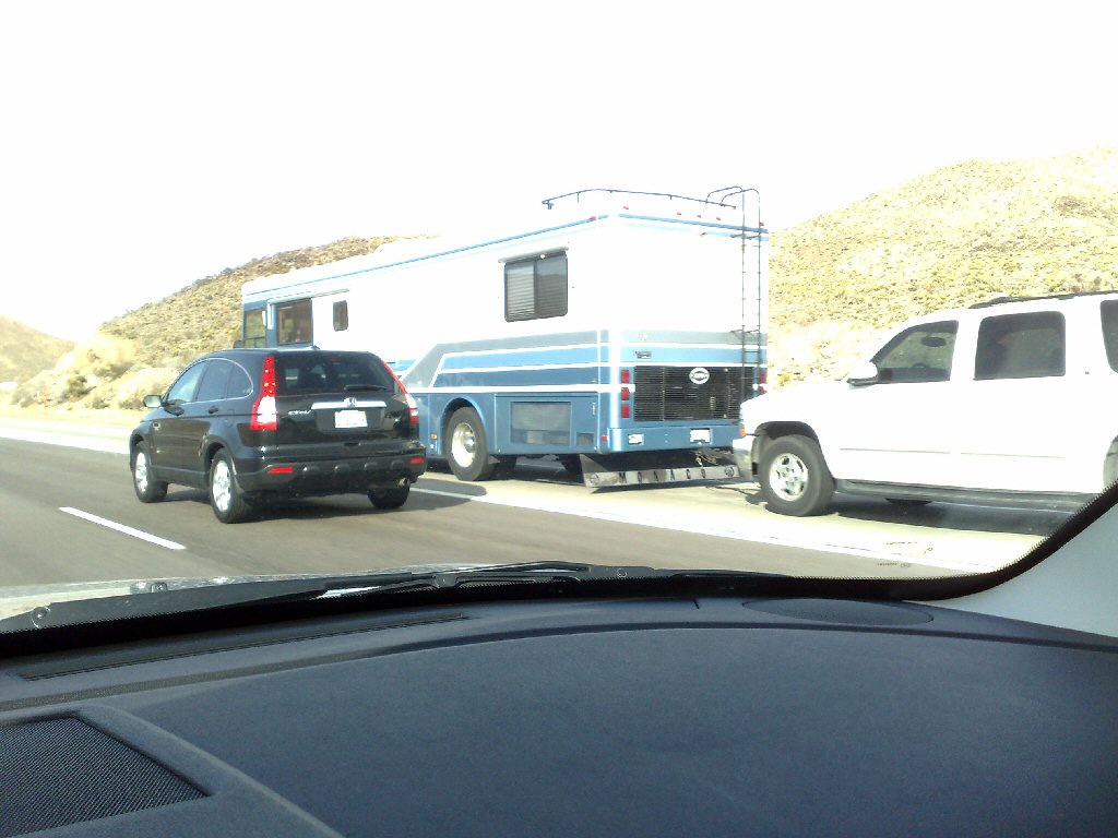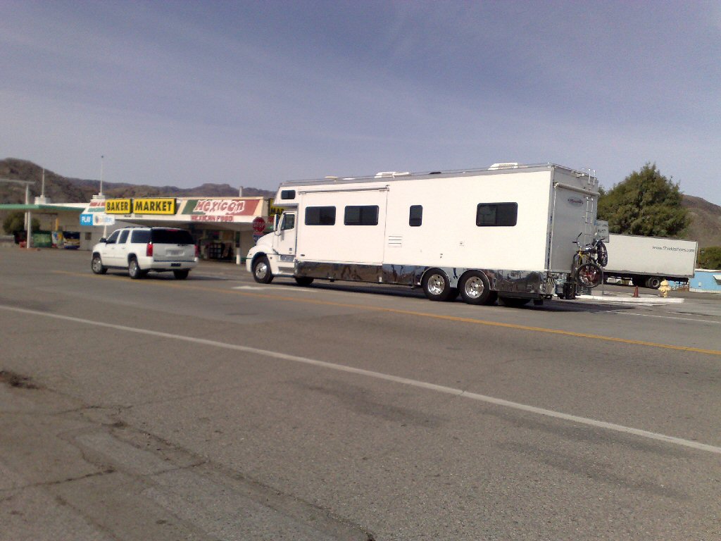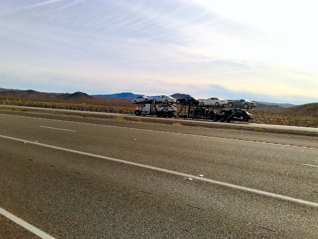 Also Trucks konnte man bei der Fahrt in allen Variationen sehen. Es war wirklich erstaunlich wie verschieden die Trucks dort waren. Keiner sah aus wie der anderen, so wie hier in Germany. So sind wir dann weiter gefahren den wir hatten ja auch noch einen langen weg vor uns. Ein wenig später wunderte ich mich. Ich sah einen PickUp der ganz nah auf ein Wohnmobiel auffuhr. Ich dachte mir noch so mensch der hat es ja drauf und vor allen schjeint das hier selbstverständlich zu sein. Dann mußte ich fast lachen als ich beide überholte. Der PickUp hatte gar keinen Fahrer. Nein der wurde einfach vom Wohnmobil hinterher gezogen wie ein Anhänger. Unterm Wohnmobil ging ein drehabares Gestänge weg unter den PickUp. Der war daran befestigt und konnte so wie ein Anhanger hinterher gezogen werden. Sowas möchte ich mal in Germany sehen ;)