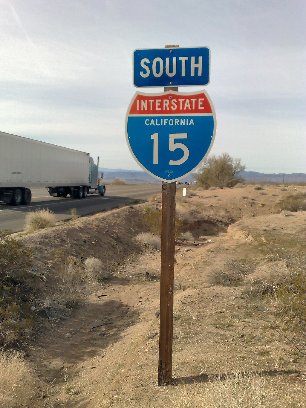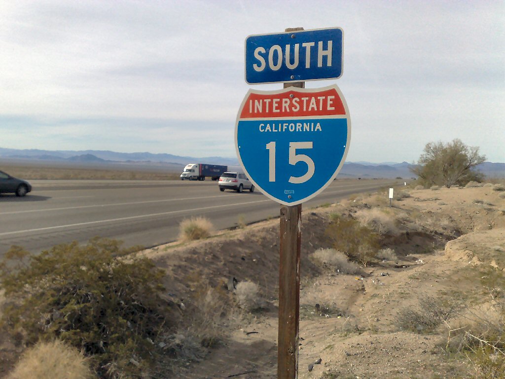So jetzt waren wir auf dem Freeway 15 south unterwegs nach Californien. Es war auch weiterhin super zu fahren. Es gab fünf - sechs Spuren pro Seite. Teilweise gab es sogar eine eigende Spur für Trucks und langsam fahrende Autos. Dort steht auch auf der Spur "for slow Cars and Trucks".