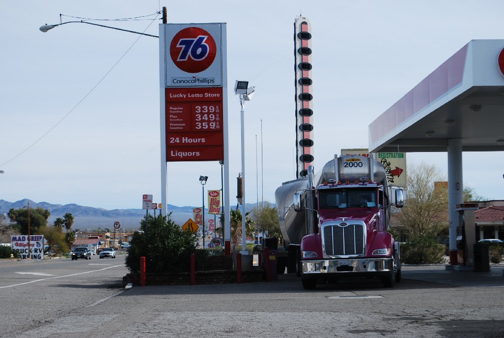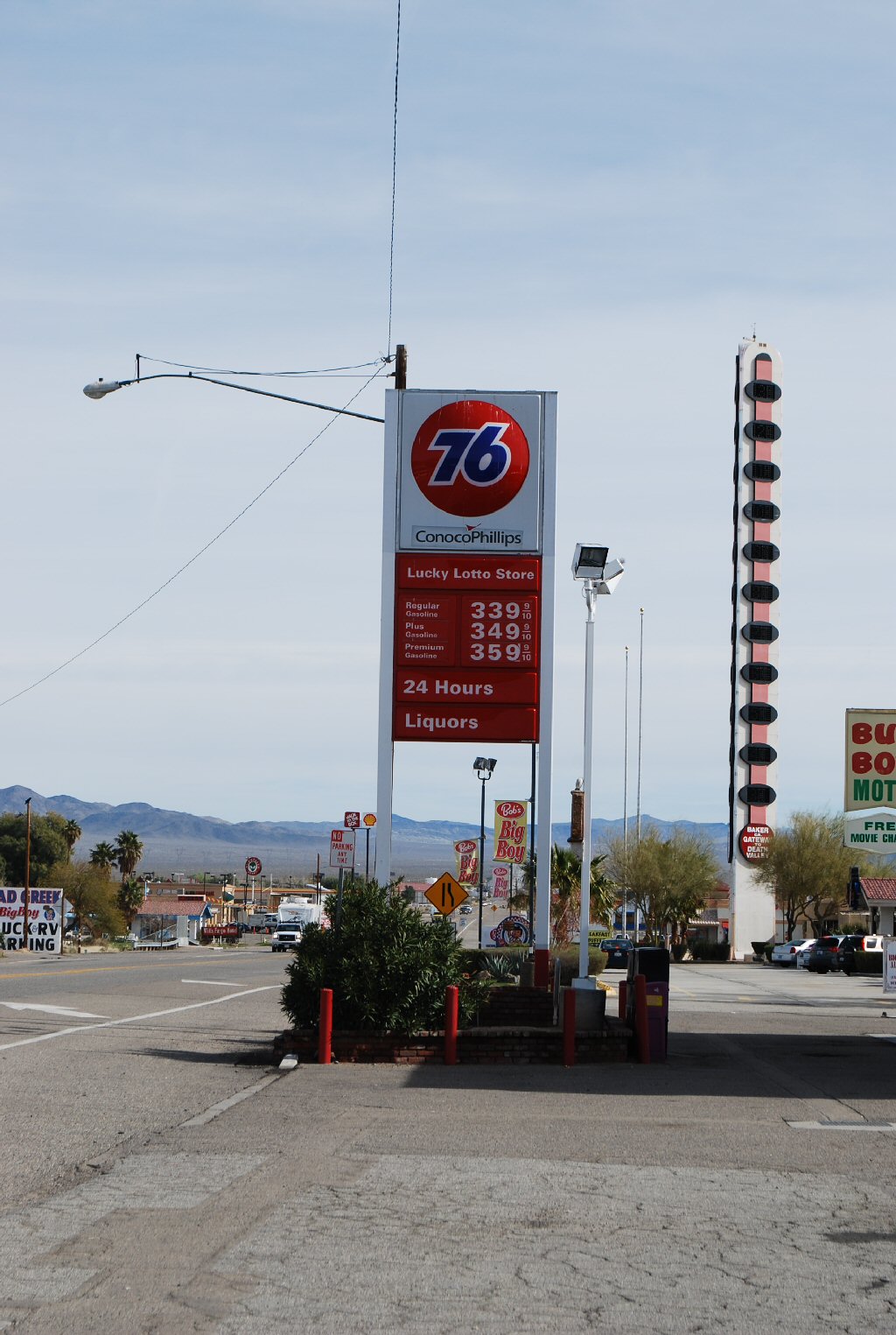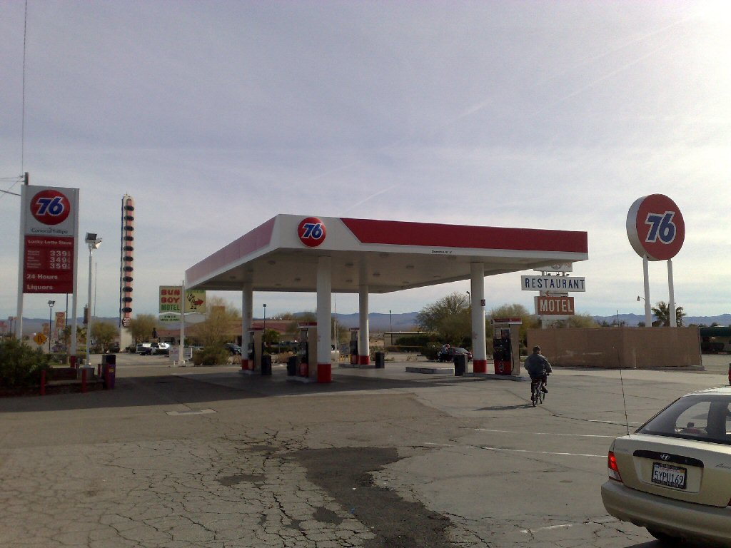 Dort gab es wirklich nicht viel aberes war alles wie man es sich in USA vorstellt von so einem Dorf / Stadt. Dort gab es eine "76 Tankstelle ( wer sich mit NASCAR auskennt, der weiß das "76 vor Sunuco der offcielle Spritlieferant über Jahrzehnte war ). Auch gab es ein Shop, einen Gyrosladen und so ein zwei Sachen noch. Interessant war aber das dort keine einzige Ampel gab. Der komplette Verkehr wurde über Stopschilder an den Kreuzungen geregelt.