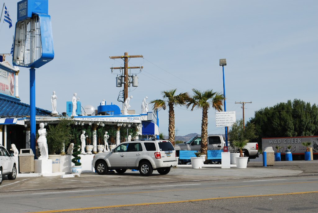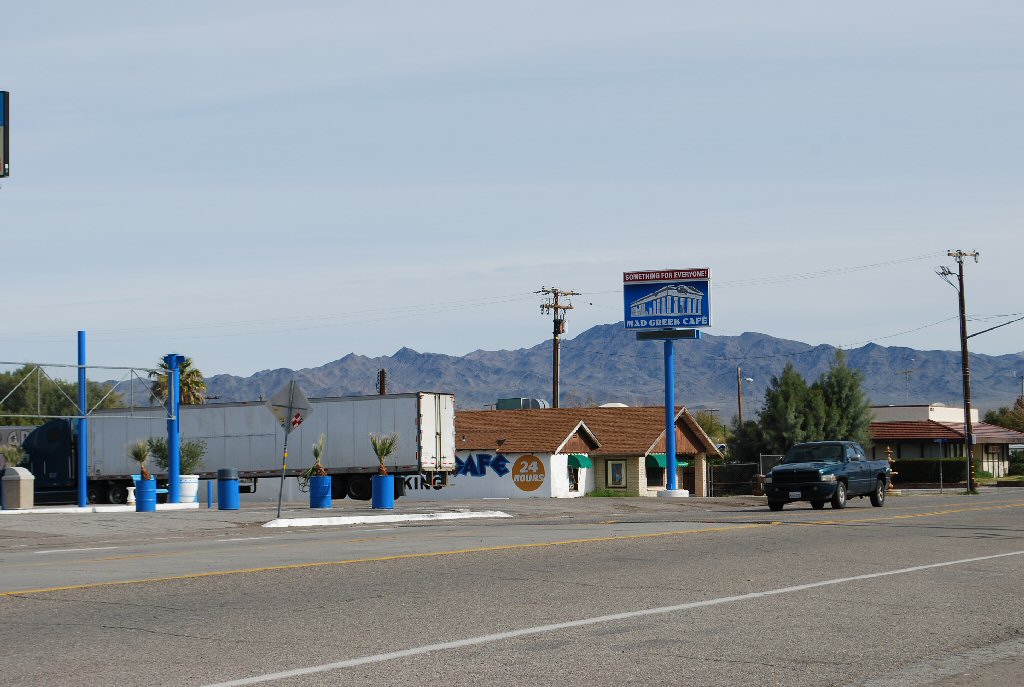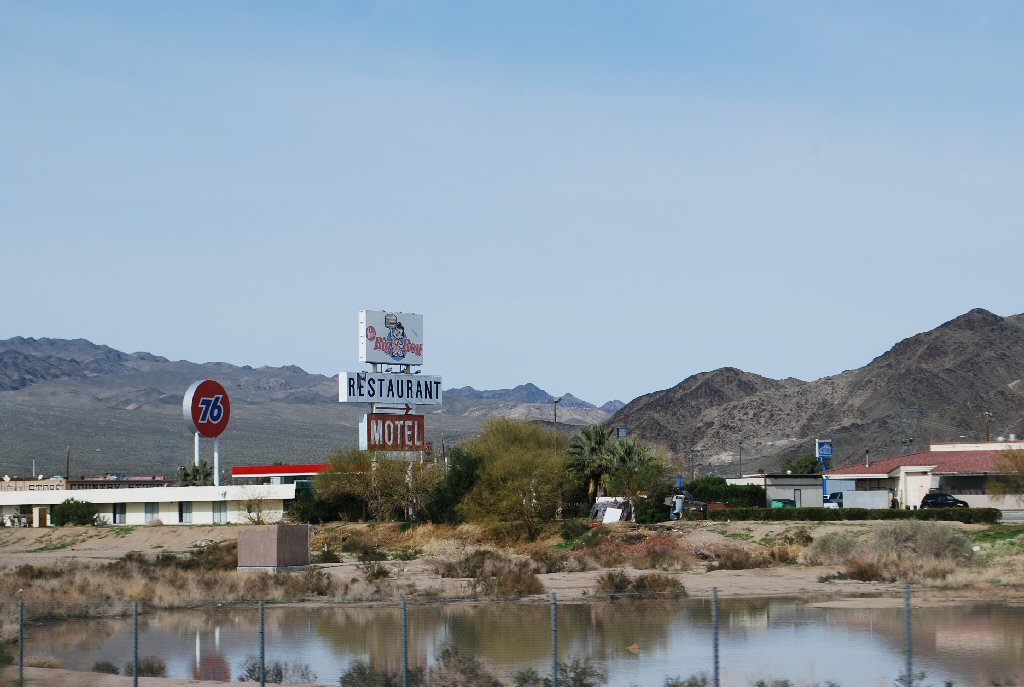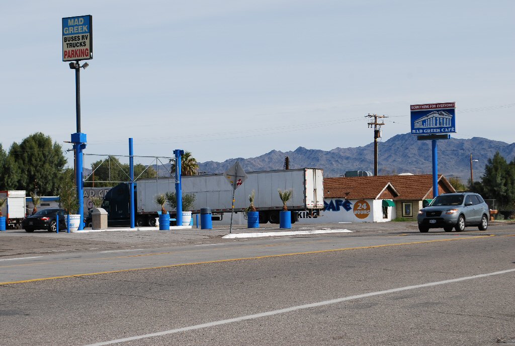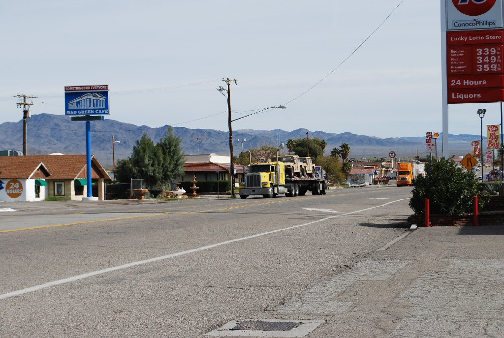 Nach einiger Zeit sind wir an einem Ort vorbei gefahren das wirklich geil ausah. Man konnte es nicht glauben das es sowas wirklich gibt. Es war ein Dorf. Auf einigen Grundstücken standen verrostete Trucks und Anhänger. Im Dorf selber konnte man richtige old shool Tankstellen und Geschäfte sehen. Es war einfach gigantisch sowas sehen zu können, mitten in der Wüste ein kleines Dorf / Stadt.