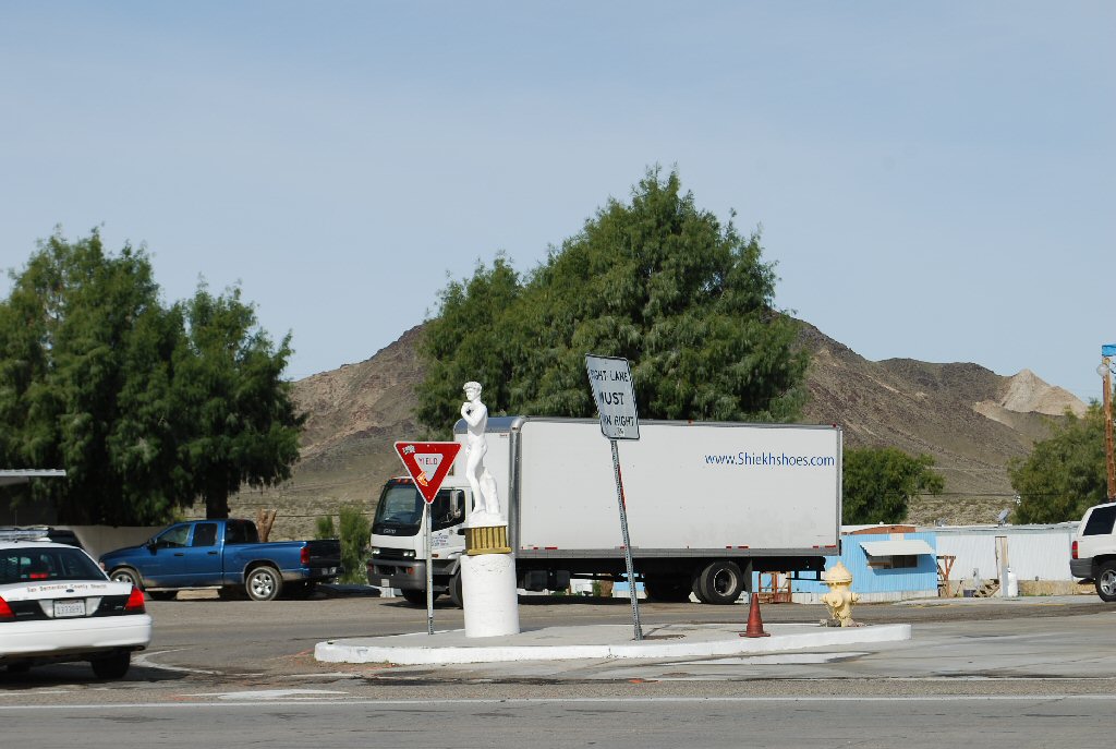 Ein wenig weiter kam wir dann an einem Schild vorbei. Dort drauf stand Death Valley. Jemand war sehr aufgeregt von uns und ich fragte ob ich mal hier raus fahren sollte. Das wurde sofort mit "Ja" beantwortet. So bin ich die Abfahrt runter gefahren und wir gelanten direkt in diesen Vorort von Death Valley.