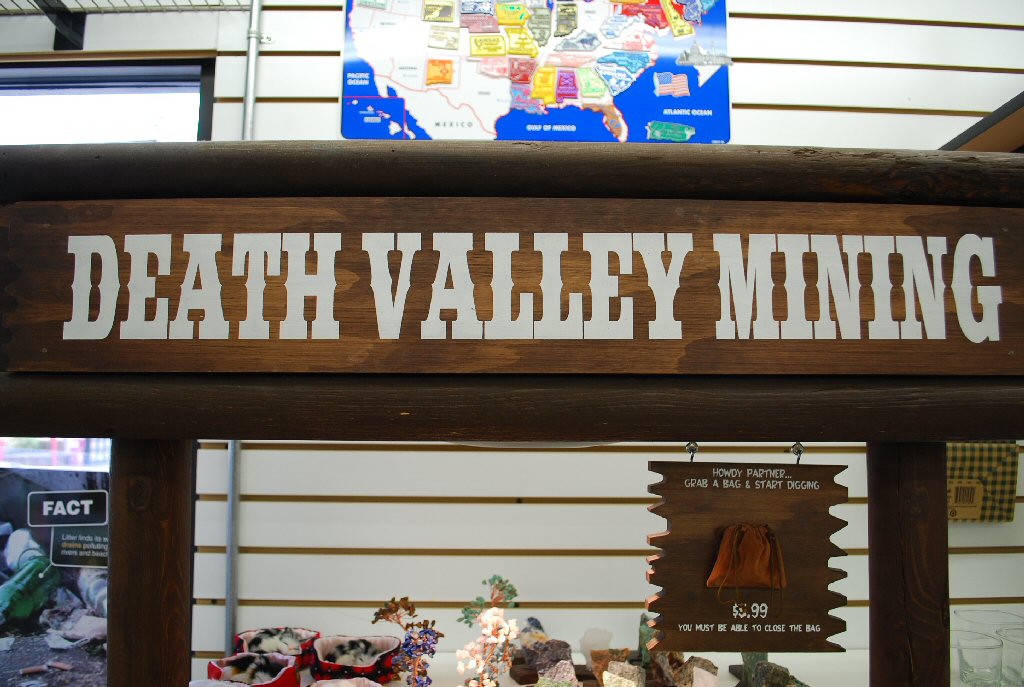 Wir sind dann in den Shop rein gegangen und haben uns ein wenig umgesehen. Es gab dort Souviniers zu kaufen, Kaffe to go, etwas zu Essen, Spielzeug und Postkarten usw, Es gab dort drin auch schöne Steine von einer Mine von Death Valley zu kaufen.