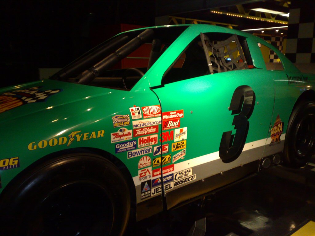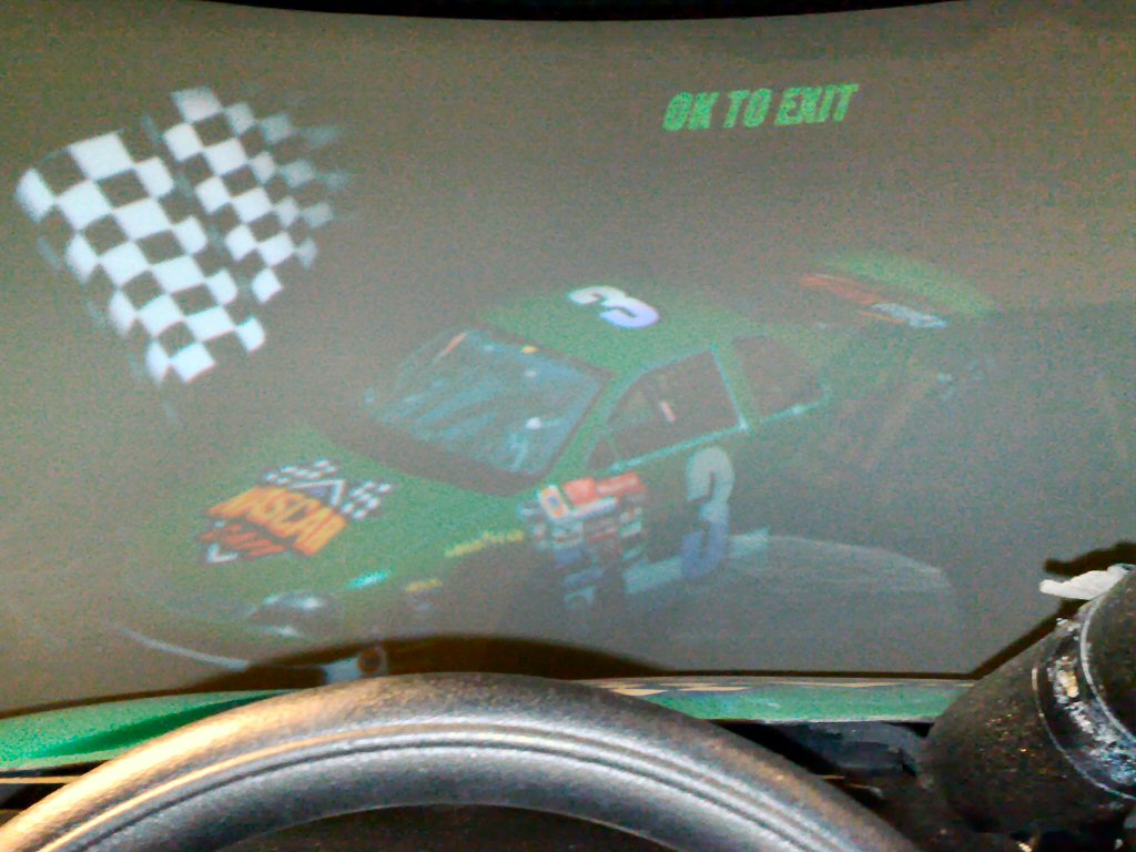 So sind wir zum NASCAR Simulator gegangen. Den konnten wir noch fahren. Der Simulator war ja riesig. Jeder der $10 bezahlte, konnte sich ein Auto in einer eigenden Kabine aussuchen. Trotzdem fuhr man gegeneinander. Ich übernahm die #3 für Dale Earnhardt Sr., da es keine #24 Jeff Gordon gegeben hatte. Man konnte durch eine kleine Tür und das Auto einsteigen. Dort gab es ein Dashboard und das Lenkrad. Pedale waren auch vorhanden wie auch eine Schaltung.