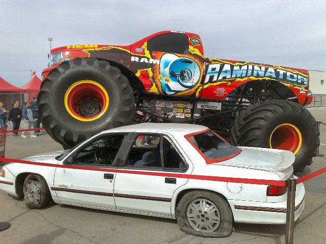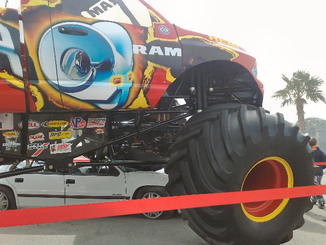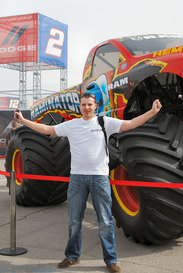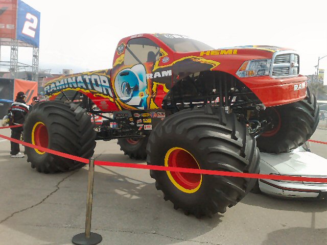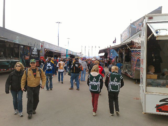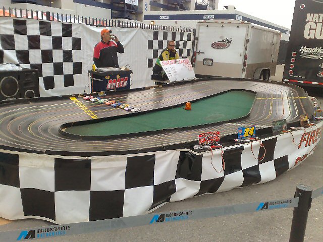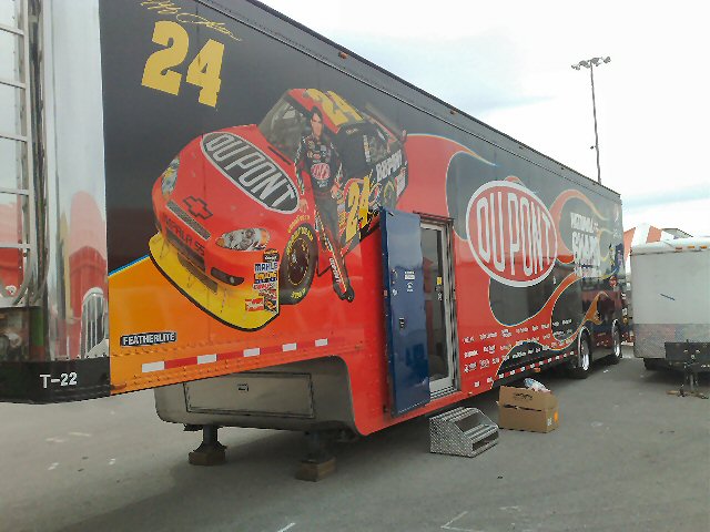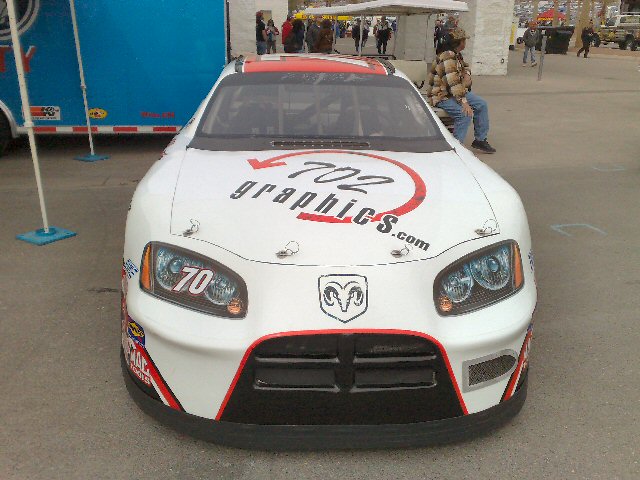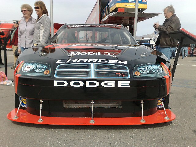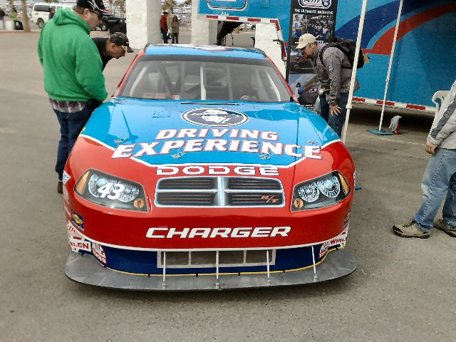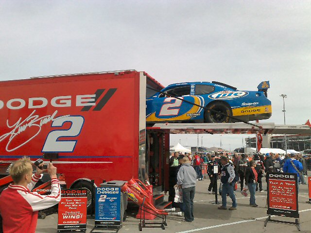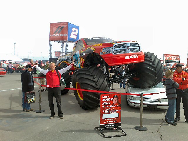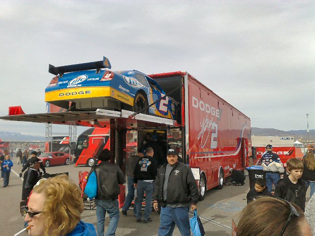 Es gab dort ein richtig großes Vorprogramm bevor man zum Speedway über die Strasse kommt. Der Sound kahm von Dodge Challenger´s und Dodge Viper´s die sich ein Drift Duell lieferten. Das ganze Vorprogramm wurde von Dodge verantstalltet. So gab es auch noch einen Montertruck ( natürlich auch ein Dodge RAM ) der auf einem Auto geparkt worden war oder einen NASCAR - Trailer. In diesen konnte man rein gehen und sich mal aunschauen wie sowas von innen aussieht. Oben war der Kurt Busch NASCAR auf einer Rampe vom Trailer und unten waren alle Sachen drin wie Ersatzmotoren, Werkzeug usw.