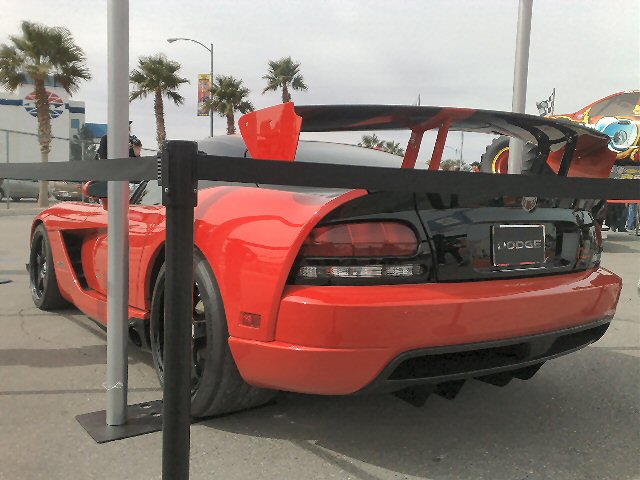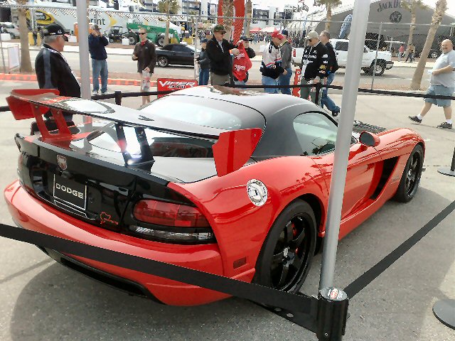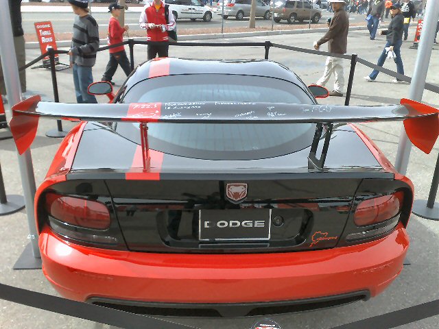 Gegenüber gab es dann noch eine Dodge Viper RaceCar. Diese Viper ist schon auf dem Nurbürgring gefahren. Das stand alles auf dem Heckspoiler drauf mit den ganzen Unterschriefen von den Fahrern und Teammitgliedern.
