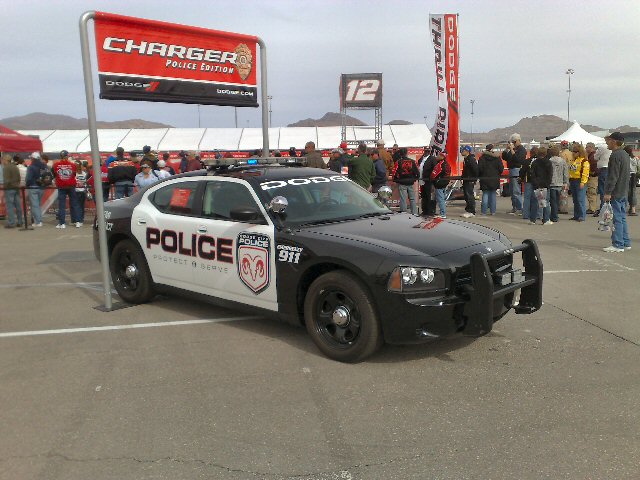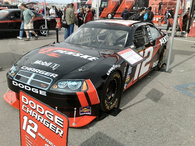 An der nächsten Eche stannd dann der neue Wagen von Bred Kesselowski. Der Penske Dodge Charger Nummer #12. Das ist das Auto was ich als Straßenversion gefahren bin. Man beachte die Ähnlichkeit der Renn und der Staßenversion. Das Police - Car ist auch ein Dodge Charger so wie der den ich gefahren bin.