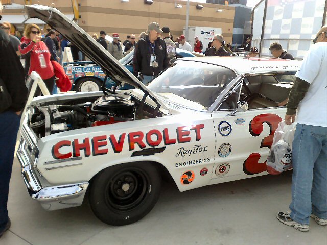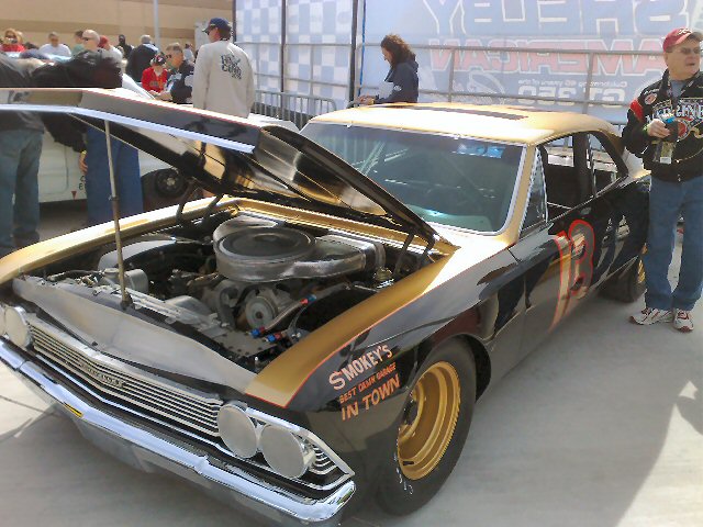 Jetzt wollten wir aber langsam mal richtig in Infield. So sind wir duch die NeonGarage gelaufen um zu schauen wo es den runter geht. Dort standen dann aus den ´60er und ´70er alte original NASCARs. Der weiße mit der #3 ist von Junior Johnson gewesen. Es war schon sehr interessant zu sehen wie die NASCAR Fahrer damals gefahren sind. Dort gab es noch keine speziellen Sitze oder so einen guten Käfig. Auch das Lenkrad und das Amaturenbrett waren noch aus dem Serien - Fahrzeug nur das im Dashboard die Anzeigen wie Drehzahlmesser eingebaut worden sind. Die Gute waren schlechter als bei unseren Straßenautos heute. Das müßen echte Draufgänger gewesen sein früher. Selbst die Stoßstangen sind vom Serien - Fahrzeug. Der weiße ist ein Chevy Impala und der schwarze ist ein Chevy Chevelle. Früher sind die Fahrer mit dem Auto zum Speedway gefahren und nach dem Rennen, sofern das Auto noch heile / fahrbereit war, sind sie dann mit dem Auto wieder nach hause gefahren und haben es für das nächste Rennen fertig gemacht. Heute wäre sowas undenkbar, aber ohne diese Leute wäre NASCAR nicht das was es heute ist den die wollten immer weiter Rennen fahren da es ja auch viel an Geld und Ehre zu gewinnen gab.