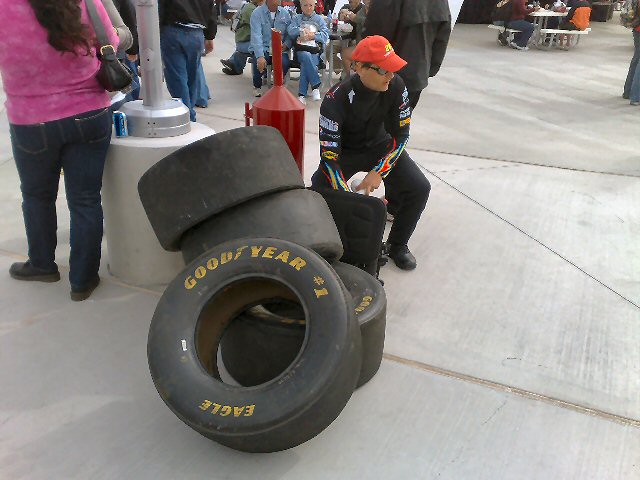 Wir sind dann links erst einmal schauen gegangen. Dort hatten wir dann auch gleich mal Glück, den dort war die Ein- und Ausfahrt von den Fahrern. Da sind wir dann ein wenig geblieben und haben es genossen die Autos nur wenige cm an uns vorbei fahren zu lassen. Jo war dann auch immer ganz aufgeregt wenn seine Danica Patrick an uns vorbei gefahren ist. Er schrie so laut DANICA das man fast keinen Motorsound mehr hören konnte. Das zweite mal rief er "Danica Darling". Ich mußte lachen löl Jo.