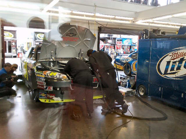 Jetzt sind wir direkt an die Boxenmauer gegangen. Von dort aus haben wir dann noch ein wenig die Nationwide beim Practice - Lauf beobachtet.