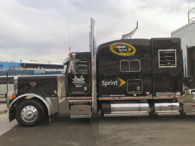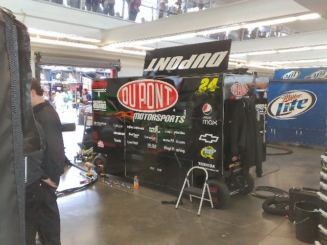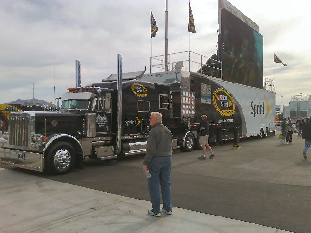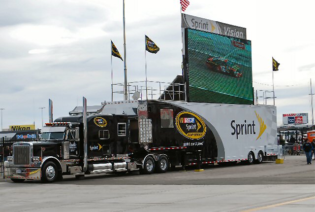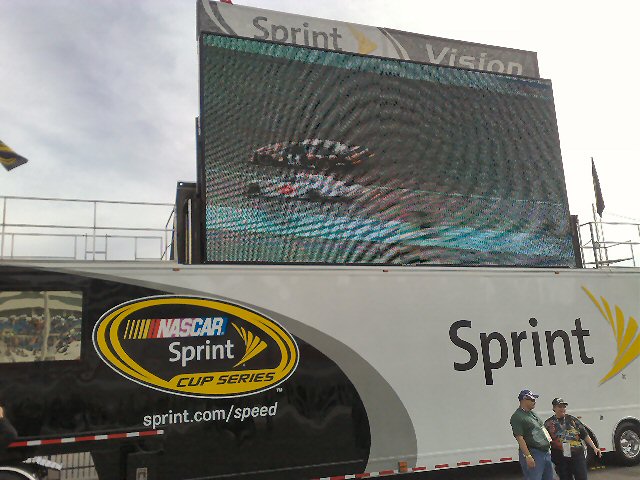 Wir sind dann weiter die Pitlane runter gegangen. Vorbei am Media Center. Dort stand dann ein Sprint Cup Truck. Der hatte einen riesigen Bildschirm oben am Trailer. Der war für die Tribühne gedacht. Dort wurden später Unfälle usw. gezeigt als Widerholung.