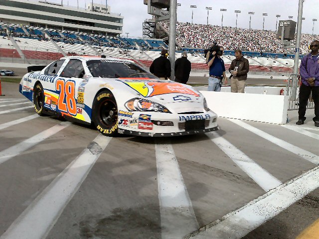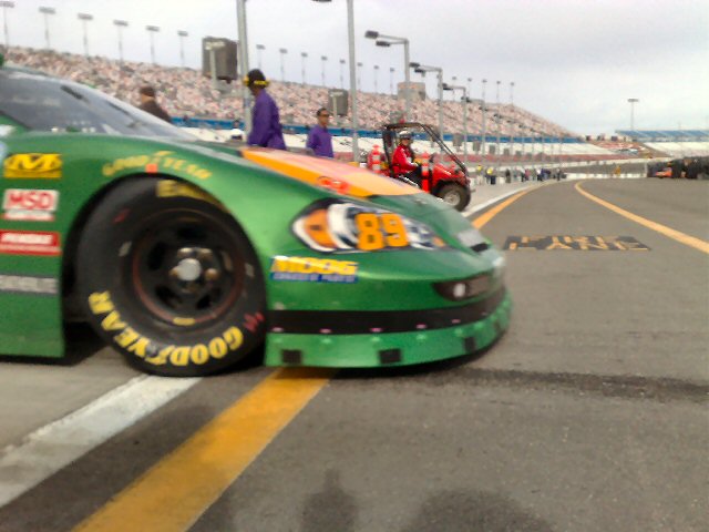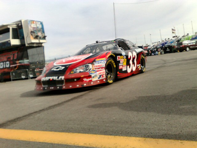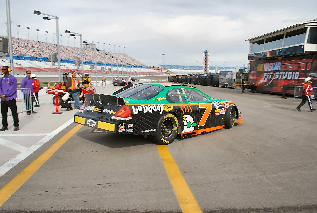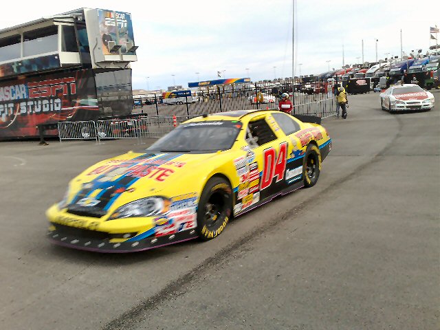 Ich wunderte mich ein wenig da ja eigendlich heute der Sprin Cup Qualifying - Lauf sein sollte, daß die Nationwide so lange heute unterwegs ist. Da habe ich zwei Firefighter Leute gefragt ob sie wüßten ob der Sprint cup Qualifying - Lauf heute noch statt findet und wenn ja wann den. Die beiden sagten mir das er heute nicht statt finden wird sondern nur der der Nationwide. Das fand ich aber schade da ich dachte das ich die Sprint Cup beim Qualifying sehen würde. Also bin ich mit den Nachrichten zu Jo und er war auch ein wenig verwundert. Aber dann dachten wir egal hauptsache wir sehen überhaupt einen Lauf. Doch dann als wir immernoch an der Boxenmauer standen und der Nationwide weiter zu schauten, sind die ersten Sprint Cup Autos an uns vorbei geschoben worden. Jetzt war ich doch durcheinander, den sollte jetzt doch noch das Sprin Cup Qualifying kommen. Das erste Auto war von #13 Max Papis. Das zweite #56 folgte unmittelbar.