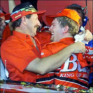 Ralph Dale Earnhardt, Sr. (* 29. April 1951 in Kannapolis, North Carolina; † 18. Februar 2001 in Daytona Beach, Florida) war ein US-amerikanischer NASCAR-Rennfahrer und der Vater von Kerry, Kelley Earnhardt Elledge, Dale Jr. sowie Taylor Earnhardt. Zudem war er Gründer seines eigenen Teams Dale Earnhardt, Inc. Bekannt ist Earnhardt vor allem durch seine Erfolge im Winston Cup, der höchsten Rennserie der NASCAR, den er insgesamt sieben Mal gewann, ebenso wie Richard „The King“ Petty. Zudem gewann er 76 Rennen, darunter das Daytona 500 der Saison 1998. Bekannt war er zudem durch seinen aggressiven Fahrstil, welcher ihn insbesondere unter den NASCAR-Fans populär machte. Zu seinen Spitznamen gehörten „Ironhead“ (Eisenkopf), „Mr. Restrictor Plate“ (Mr. Luftmengenbegrenzer; bezogen auf die Rennen mit Einsatz von Luftmengenbegrenzern in Daytona und Talladega), „The Man in Black“ sowie der bekannteste „The Intimidator“. Earnhardt starb bei einem Unfall in der letzten Runde des Daytona 500 der Saison 2001 und war damit der vierte Fahrer, der innerhalb von neun Monaten nach dem Tod von Adam Petty ums Leben kam. Der Aufschrei von vielen Fans sorgte letztlich mit dafür, dass NASCAR den Fokus auf Sicherheit intensivierte, unter anderem durch die Installation der sogenannten SAFER Barriers, das heißt einer zweiten, vorgelagerten und nachgebenden Außenmauer in den Kurven, rigorosen neuen Bestimmungen in Bezug auf die Sicherheitsgurte und die Einführung des HANS-Systems, sowie letztlich die Entwicklung eines neuen, sicheren Rennwagens, dem Car of Tomorrow. Frühe JahreEarnhardt wurde in Kannapolis, North Carolina als Sohn von Martha Coleman und Ralph Earnhardt, einem der besten Short-Track-Fahrer in North Carolina, geboren. Obwohl Ralph nicht wollte, dass sein Sohn in seine Fußstapfen tritt, konnte er ihn nicht dazu überreden, seinen Traum vom Rennfahren aufzugeben. So verließ Earnhardt die High School, um Rennen zu fahren. Sein Vater unterstützte ihn daraufhin und war ihm ein strenger Lehrer, was das Rennfahren anbelangt. Noch Jahre nachdem sein Vater Ralph 1973 an einem Herzinfarkt starb, glaubte Earnhardt, dass er sich noch seinem Vater beweisen müsse. Im Alter von 17 Jahren heiratete Earnhardt seine erste Frau Latane Key im Jahre 1968. Sein erster Sohn Kerry wurde 1969 geboren. Bereits ein Jahr später folgte die Scheidung. Im Jahre 1971 heiratete Earnhardt seine zweite Frau Brenda Gee, die Tochter des NASCAR-Autobauers Robert Gee. Zusammen mit ihr hatte er zwei Kinder: Tochter Kelley wurde 1972 geboren, sein Sohn Dale Jr. kam 1974 zur Welt. Nur kurze Zeit später ließ er sich von Brenda scheiden. Anschließend heiratete er seine dritte und letzte Frau, Teresa. NASCAR-KarriereFrühe Jahre im Winston CupDale Earnhardt feierte sein Debüt im Winston Cup in der Saison 1975 beim World 600 auf dem Charlotte Motor Speedway. Er startete in einem Rennwagen von Ed Negre und beendete das Rennen auf Platz 22, einem Rang vor seinem späteren Wagenbesitzer Richard Childress. Bis zur Saison 1979 ging Earnhardt in acht weiteren Rennen an den Start, bevor er für Rod Osterlund Racing seine Rookie-Saison absolvierte. In dieser Saison erzielte Earnhardt vier Pole-Positionen, elf Top-5-Ergebnisse, 17 Top-10-Ergebnisse und wurde Siebter in der Meisterschaft, obwohl er vier Rennen wegen eines gebrochenen Schlüsselbeins aussetzen musste. Mit diesen Leistungen sicherte er sich den Titel des Rookie of the Year. In seiner zweiten Saison startete Earnhardt mit seinem 20-jährigen Crew Chief Doug Richert mit einem Sieg beim Busch Clash. Mit Siegen in Atlanta, Bristol, Nashville, Martinsville und Charlotte gewann er seine erste Meisterschaft im Winston Cup. Bis zum heutigen Tag ist Earnhardt der einzige Fahrer, der in zwei aufeinanderfolgenden Jahren den Titel des Rookie of the Year und die Meisterschaft gewonnen hat. ![]() Nachdem Osterlund sein Team während der Saison 1981 an J. D. Stacy verkauft hatte, wechselte Earnhardt zu Richard Childress Racing und wurde Siebter in der Meisterschaft, obwohl er nicht ein Rennen gewann. Auf Anraten von Richard Childress tat sich Earnhardt für die Saison 1982 und 1983 mit Wagenbesitzer Bud Moore zusammen. Während der Saison 1982 kam er ins Straucheln, denn neben seinem Sieg in Darlington kam er in 15 Rennen nicht ins Ziel, so dass er nur Zwölfter in der Meisterschaft wurde, das war das schlechteste Ergebnis seiner Karriere. 1983 kehrte er zurück und gewann sein erstes von zwölf Gatorade Duels. Mit Siegen in Nashville und Talladega belegte er am Ende der Saison Platz acht in der Meisterschaft. Rückkehr zu Richard Childress RacingNach der Saison 1983 kehrte Earnhardt zu Richard Childress Racing zurück und tauschte mit Ricky Rudd das Team, der im Gegenzug zu Bud Moore in die Startnummer 15 wechselte. Earnhardt übernahm die Startnummer 3, die zuvor von Rudd gefahren und durch ihn bekannt geworden war. Sponsor beider Wagen war Wrangler. Während den Jahren 1984 und 1985 fuhr Earnhardt insgesamt sechs mal in die Victory Lane und siegte in Talladega, Atlante, Richmond, Martinsville sowie zweimal in Bristol. Er beendete die Saisons jeweils als Vierter beziehungsweise Achter. Die Saison 1986 sollte Earnhardts zweite Meisterschaftssaison werden, in der er die erste Meisterschaft für den Wagenbesitzer Richard Childress einfuhr. Während der Saison gewann er fünf Rennen, erzielte zehn Top-5- und 16 Top-10-Ergebnisse. In der darauffolgenden Saison verteidigte er mit elf Siegen und 489 Punkten Vorsprung die Meisterschaft vor Bill Elliott. Dabei stellte er mit vier Siegen in aufeinanderfolgenden Rennen und fünf Siegen in den ersten sieben Saisonrennen zwei neue Rekorde in der modernen Ära von NASCAR auf. Die Saison 1987 war es auch, die ihm seinen bekanntesten Spitznamen „The Intimidator“ einbrachte, als er Bill Elliott im letzten Segment des „Winston“, einer Sonderveranstaltung, in der es nur um Preisgeld und nicht um Meisterschaftspunkte geht, 