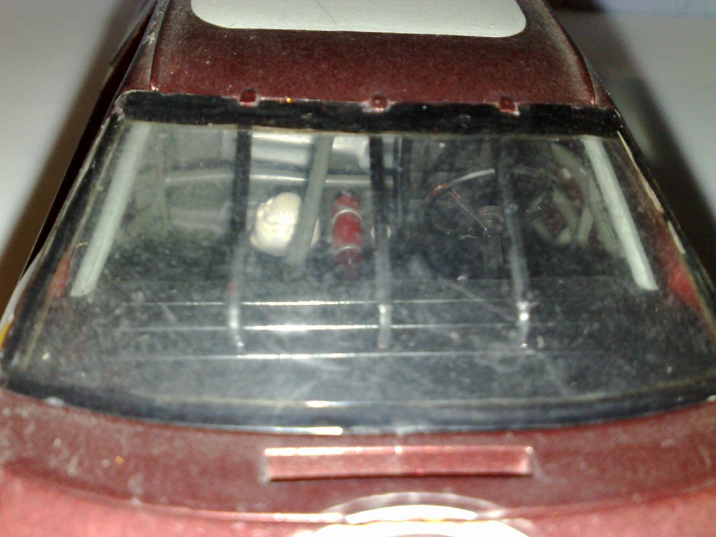 Ein Blick durch die Frontscheibe. Auch hier sieht man den Feuerlöscher und den Käfig sowie den Fahrersitz und das Lenkrad