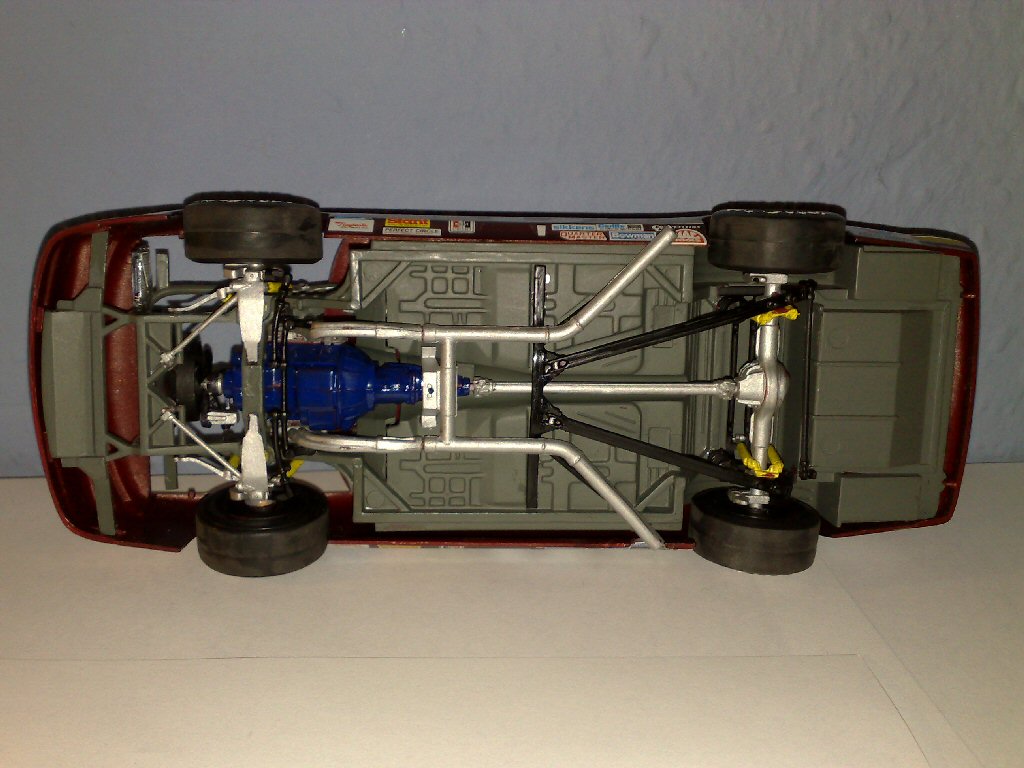 .1992 MARK MARTIN FOLGER´SSeite 6 / 9Von unten. Es ist so gut wie alles vorhanden wie das Lüfterrad vom Kühler, die komplette Vorderachse mit Stoßdämpfer, das Getriebe, die Kardanwelle, beide Krümmer samt kompletter Auspuffanlage, das Diffirenzial, die komplette Hinterachse mit Stoßdämpfer sowie der Tank
