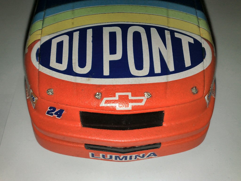 .1993 JEFF GORDON DUPONT ROOKIE LUMINASeite 5 / 5.Auf der Motorhaube ist riesen groß der Hauptsponsor "DuPont" zusammen mit den unvergesslichen Rainbow. Von diesem hatte Jeff Gordon mit seiner Crew damals den Spitznamen "Rainbow Warrior"