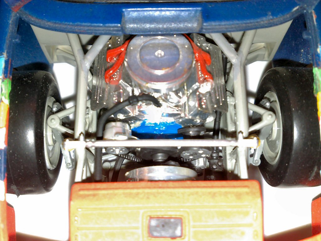 Da drunter ist der 5.7l V8 Big Block Motor. Er hat einen Kühler mit Kühlerschlauch, Zahn- und Keilriemen, Ventildeckel, Ansaugbrücke, Zündkabel und einen Luftfilter