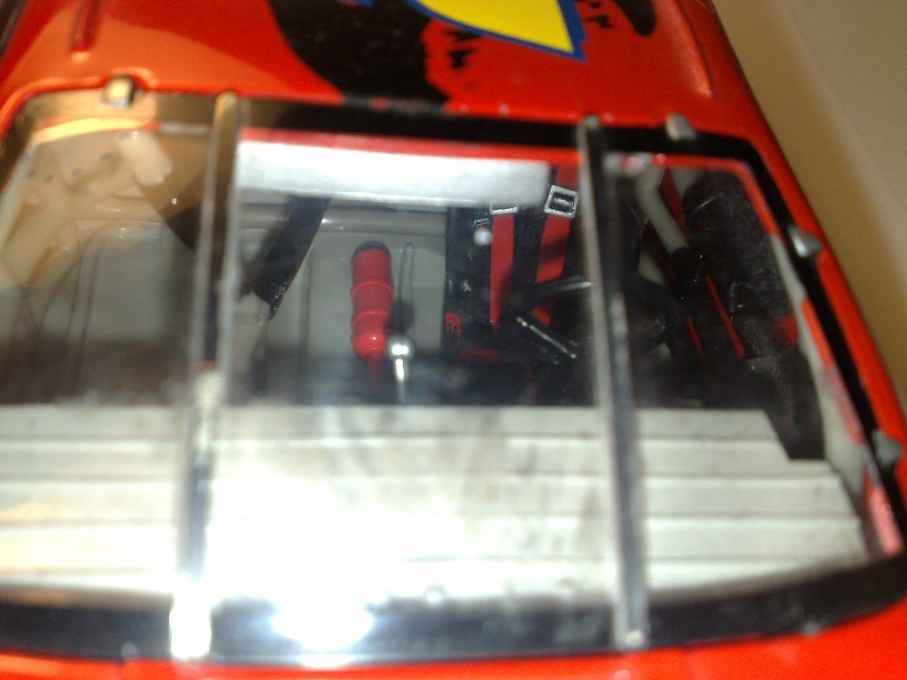 Der Blick durch die Fontscheibe. Dort ist sehr schön zu erkennen der Schalthebel, der Feuerlöscher und der Fahrersitz mit echtem 5-Punkt Gurt. Gibt es auch nur bei Elite Modellen. Die Streben der Fontscheibe sind wie die Streben der Heckscheibe aus Metall und dauf geklebt.