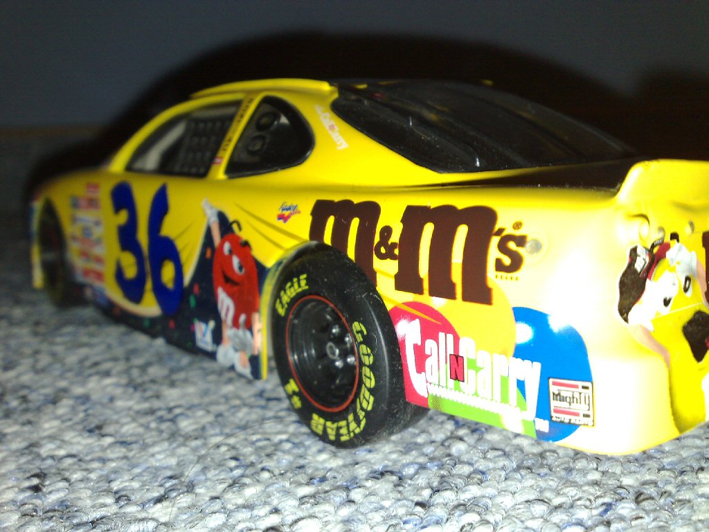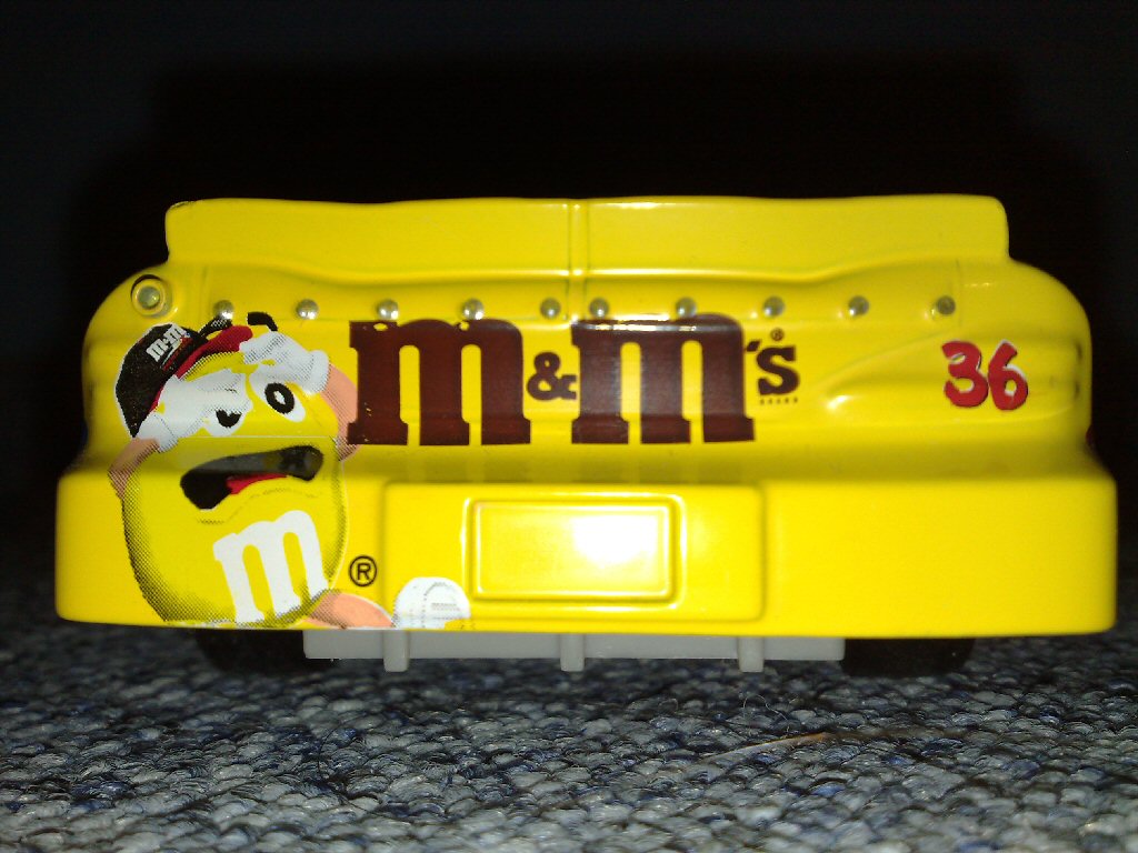 Cooles Aussehen von hinten. Das hier ist noch ein Pontiac Grand Pix NASCAR. Da waren die Heckspoiler und Kofferaum so geschwungen. Die Nieten vom Heckspoiler sind auch vorhanden und auch der Gelbe M&M ist hinten drauf wie beim Truck and Trailer. Die Nummer "36" aber hinten in Rot