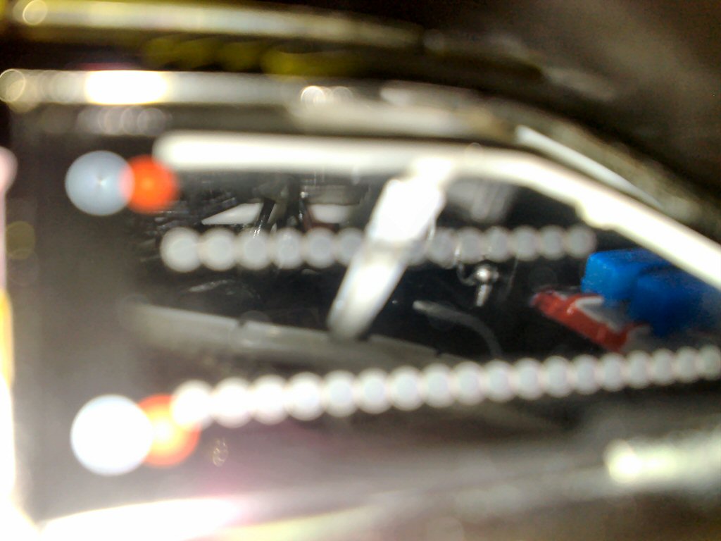 Streben in den Seitenscheiben. Schaut man druch, so sieht man das Dashboard mit allen wichtigen Instrumenten wie Drehzahlmesser usw.. Auch die Klimabox kann man hier sehen und weitere Teile vom Käfig