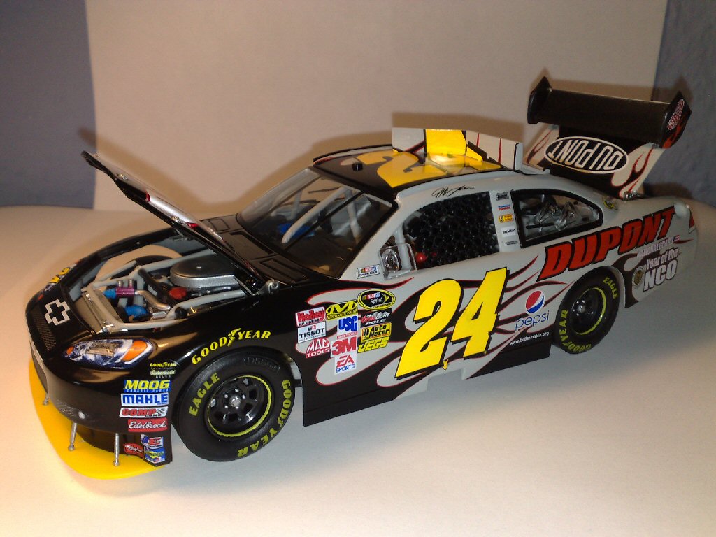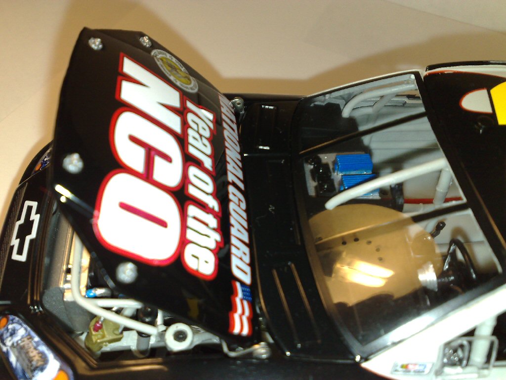 .2009 JEFF GORDON NATIONAL GUARD "YEAR OF THE NCO"Seite 5 / 6.Richtig fett auf der Motorhaube, der Hauptsponsor "National Guard Year of the NCO" Vorne in der Motorhaube sind noch die vier Schnellverschlüsse die eingeklebt sind