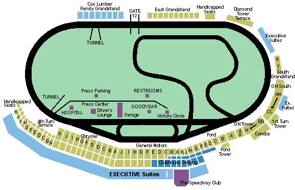 . Mailing: P.O. Box 600 Concord, NC 28026 Shipping: 5555 Concord Parkway South Harrisburg, NC 28075 E-Mail: rgreencms@aol.com Homepage: TBA Public Relations Contact: TBA Office Phone: (704) 422-3209 Der Charlotte Motorspeedway, auch Lowes Motorspeedway seid 1999 genannt, ist ein Traditions - Oval. Dort findet jedes Jahr das NASCAR - ALL Stars Rennen statt und eine Woche Später das CocaCola 600. Es ist das einzigste 600 Milesn Rennen im Jahr. Größen wie #24 Jeff Gordon feierten hier ihren ersten Sieg. . . .