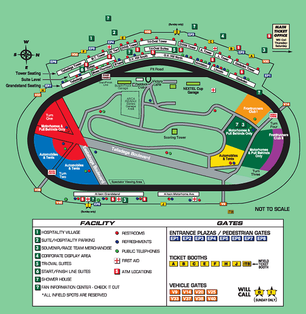Talladega ist eines der schnellsten und spannesten Rennen der Welt. Hier werden über 200Mph ( über 320kmh ) erreicht. Die Rennen werden mit Restrictor-Plates gefahren, so das die Leistung der Autos von ursprünglich 720PS, auf gute 450PS gedrosselt werden. Das tut aber keinen Abbruch um die Spitzengeschwindigkeiten trotzdem zu fahren. Der Unterschied ist einfach das die Autos länger brauchen bis sie die Gerschwindigkeiten erreichen und statt 9.000 Umdrehungen nur noch auf kann 7.000 kommen.