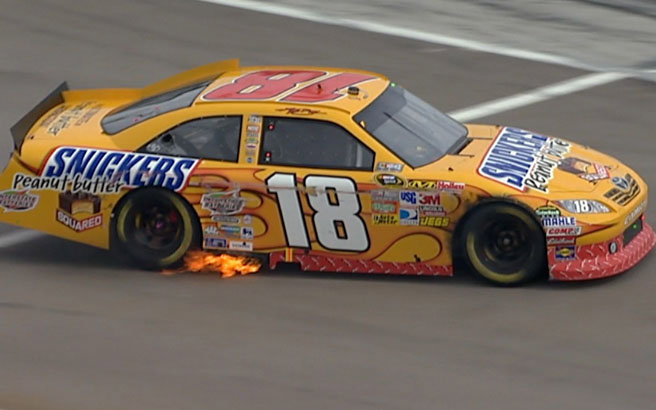 Auch #18 Kyle Busch ging es vorher nicht besser. Auch er hatte ziehmlich am Anfang des Rennes auch einen Reifenschaden. Er streifte die Mauer, so das er in die Box fahren konnte und sich neue Reifen hat abholen können. Er konnte weiterfahren. Doch keine 10 Runden später hatte Kyle Busch einen kapitalen Motorschaden. Er mußte das Rennen so frühzeitig beenden.