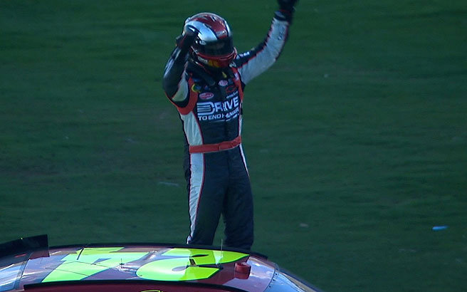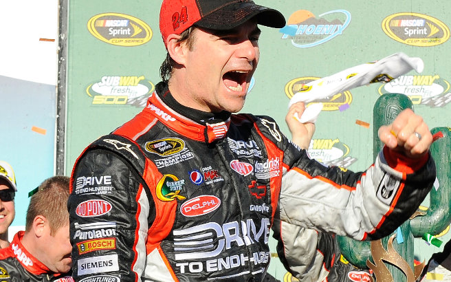 Jeff Gordon freute sich sehr über den Sieg. In der Victory Lane kahm nur" Welcome Home Jeff "